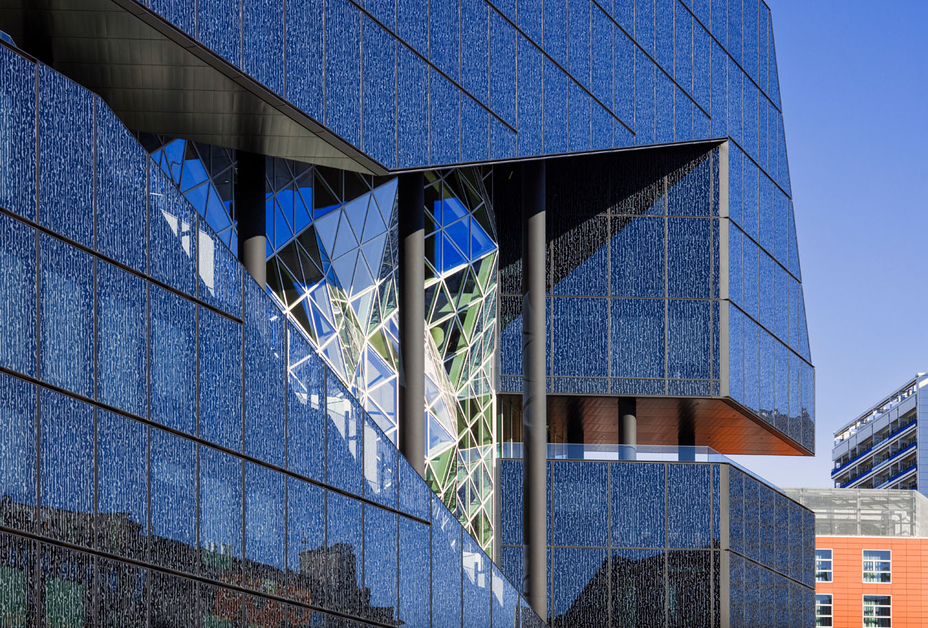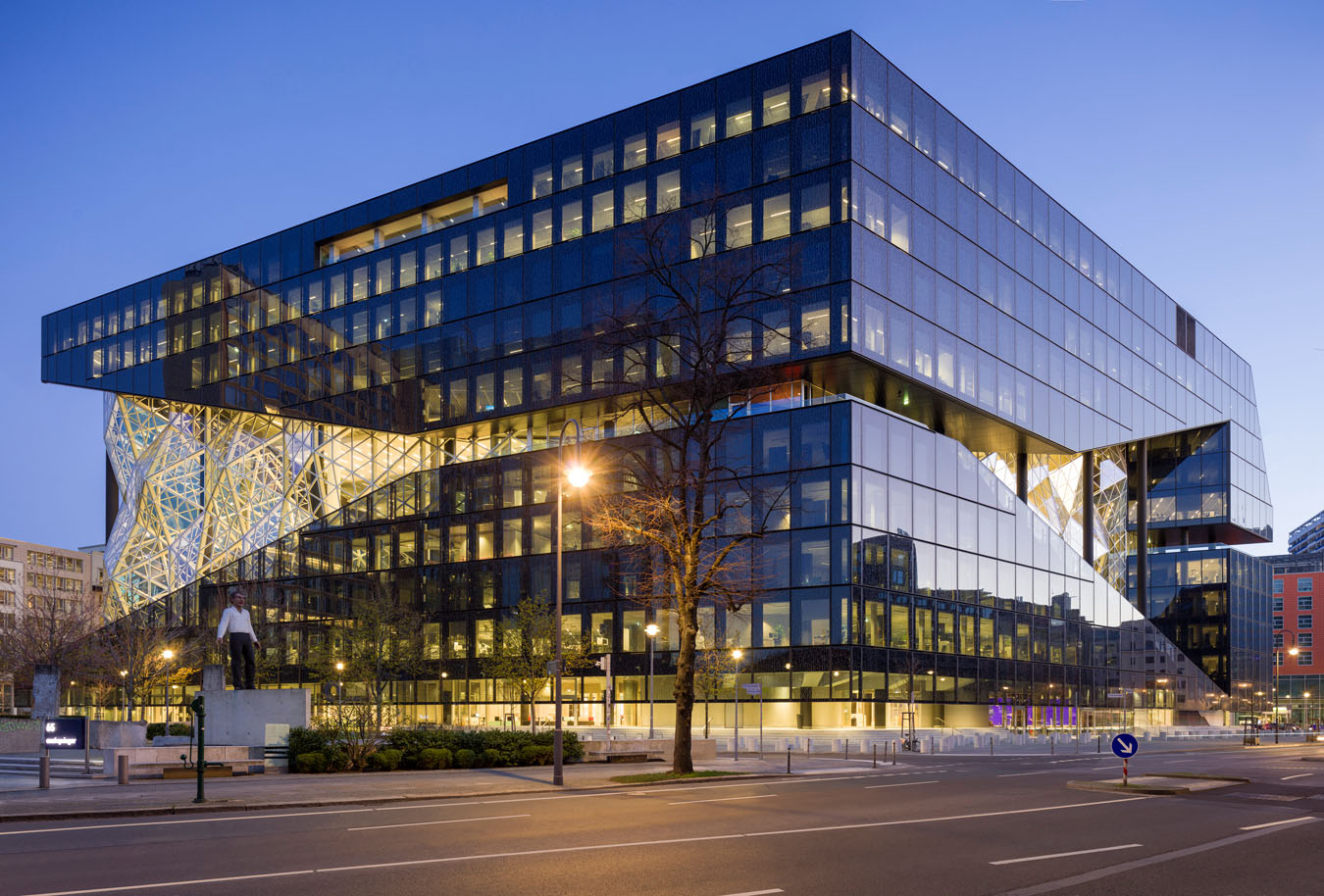Detailaufnahme in der blauen Stunde - Cube Berlin in der Europacity Berlin.