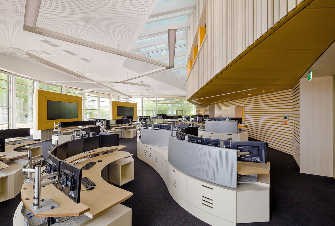 Anwendungsbilder der Schaltwarte mit Dachoberlicht in der neuen Leitstelle der Berliner Verkehrsbetriebe (BVG) für die Osram GmbH / SITECO · Architektur: Trapez Architektur